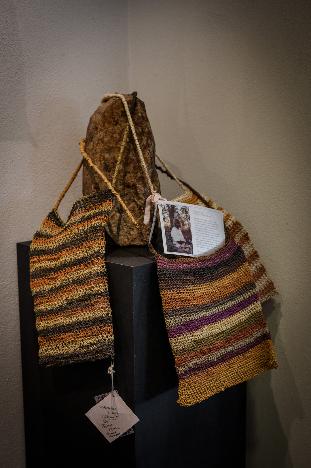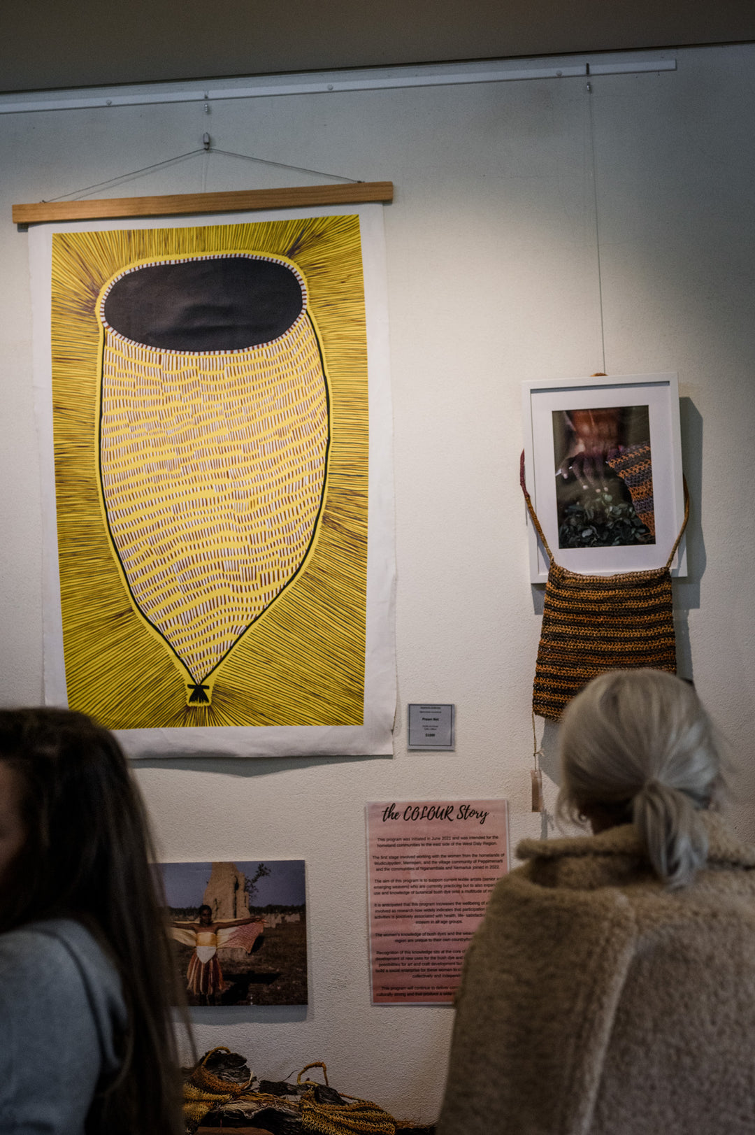 Our current Colour Story exhibition highlights traditional weaving and bush colors from these homelands. You'll also find works from the Kira Kiro Artists of Kalumburu, wood artefacts and paintings from the Wadeye Men's Shed, Warlu artists of Yuendumu, Indigenous titles from Magabala Books and traditional bush balms from Purple House and Kalumburu.