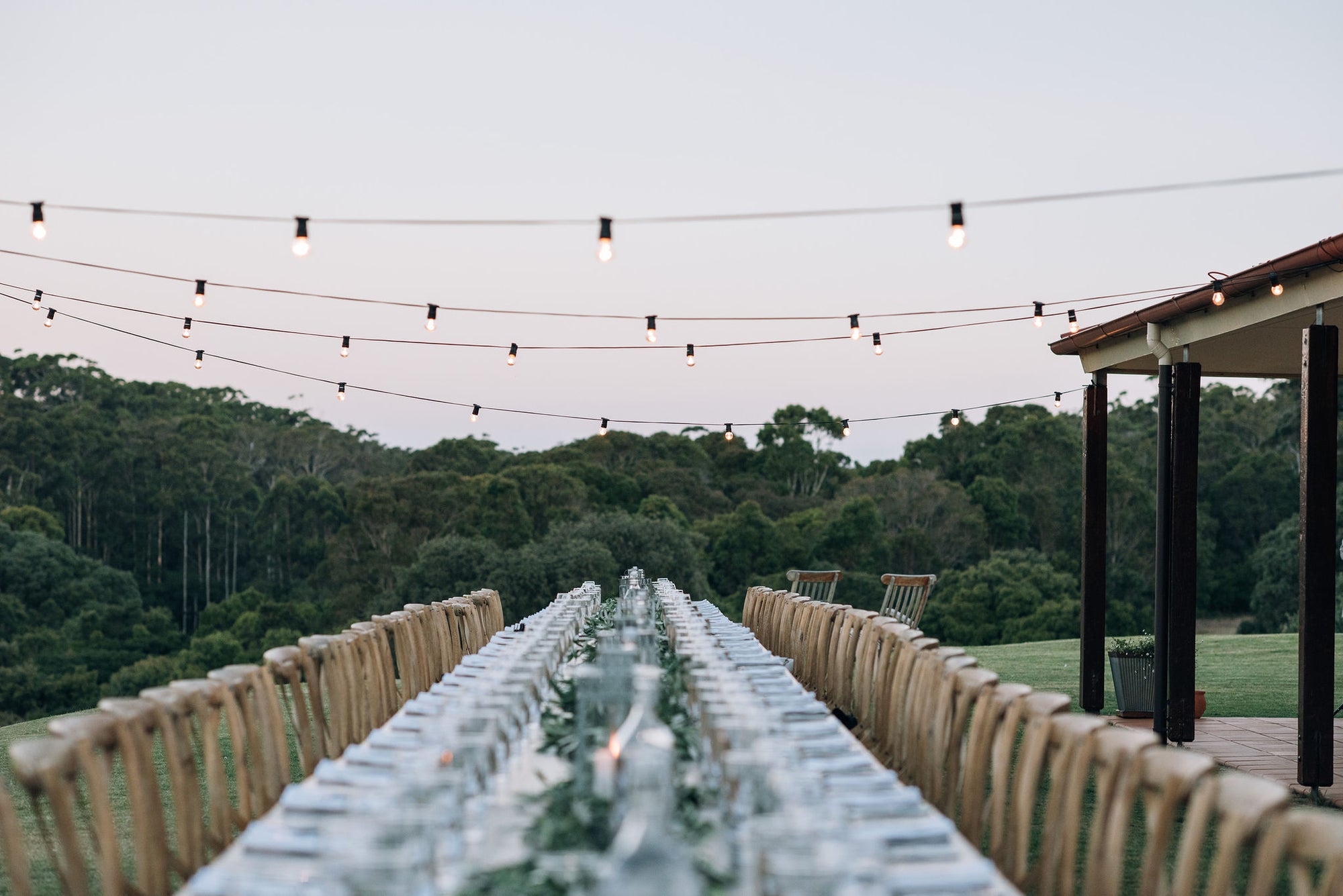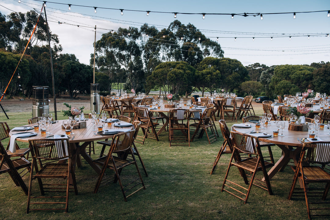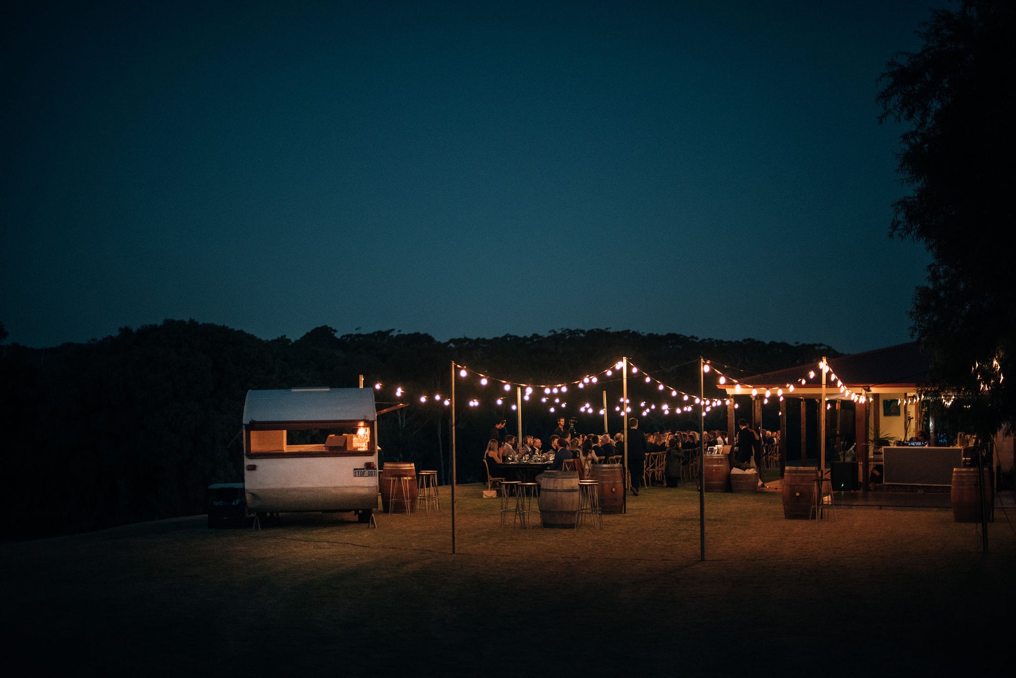Encircling the Cellar Door, 80 metres of covered veranda provide breathtaking views and a versatile space for long-table feasts or stand-up receptions - minimising the need for a marquee (guest numbers permitting). Caterers can also set up here, and our spacious concrete area, framed by stunning Jarrah doors, makes for an unforgettable dance floor.